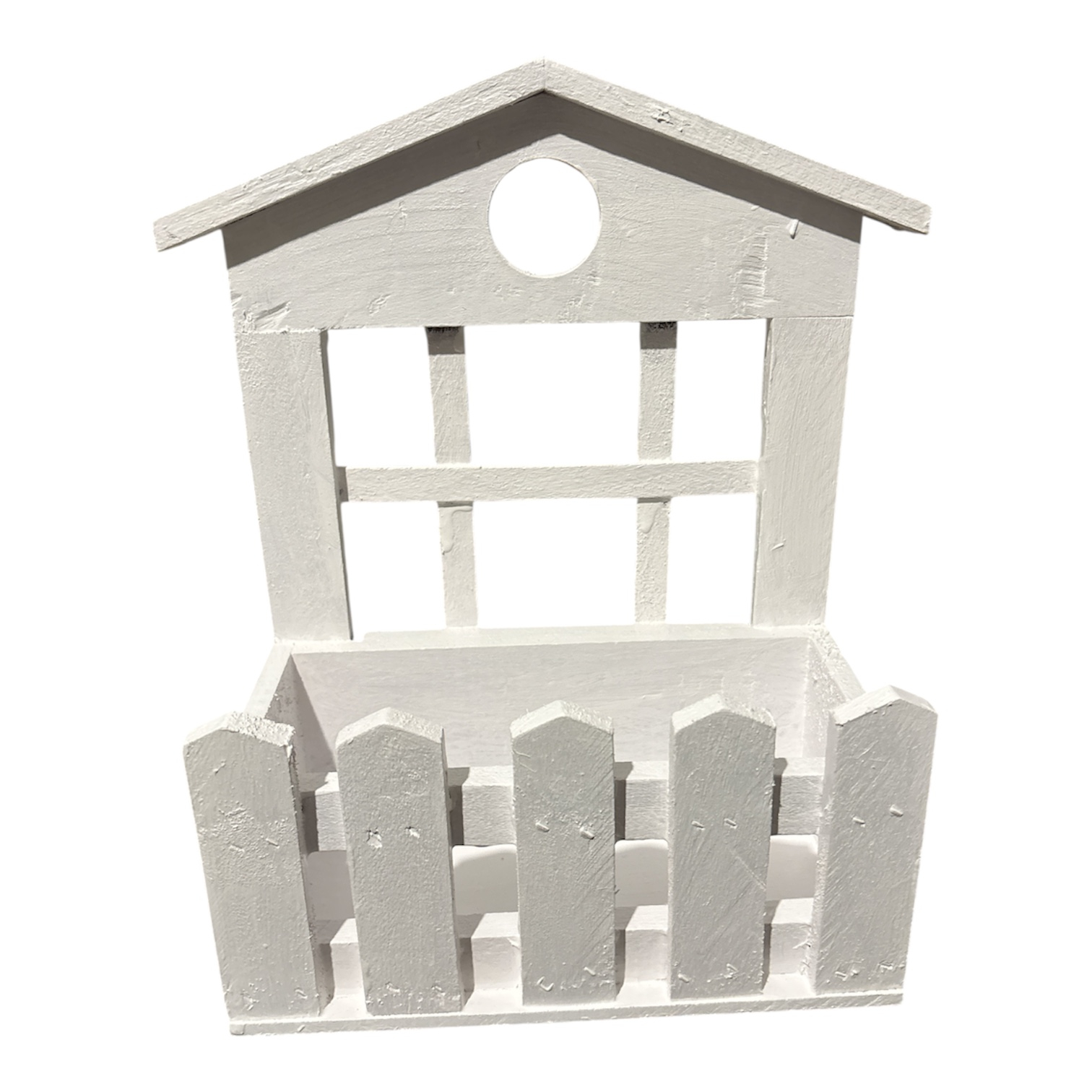 Ghiveci pentru flori din lemn, in forma de casuta cu gard, folosit fie in gradina, fie in locuinta sau la birou. Poate fi decorat cu flori naturale sau cu flori artificiale constituind un element decorativ interesant si deosebit.